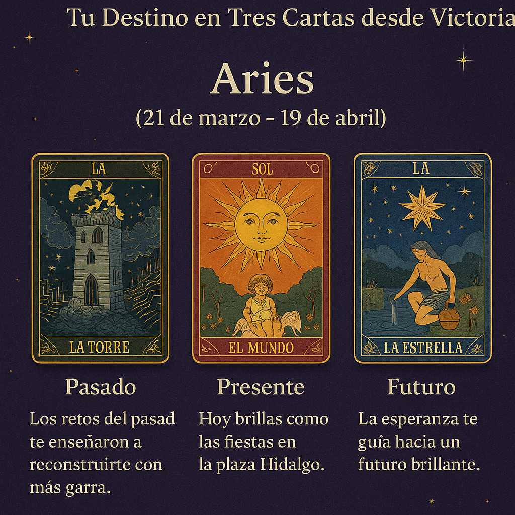 Pasado: La Torre – Los retos del pasado te enseñaron a reconstruirte con más garra. Presente: El Sol – Hoy brillas como las fiestas en la plaza Hidalgo. Futuro: La Estrella – La esperanza te guía hacia un futuro brillante.