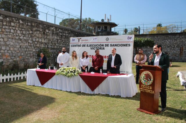 La presidenta del Sistema DIF Victoria, Lucy de Gattás, acompañó este significativo acto, destacando la importancia de reconocer que las personas privadas de la libertad conservan derechos fundamentales, entre ellos el derecho a formar una familia y a mantener vínculos afectivos que contribuyen a su proceso de reinserción social.