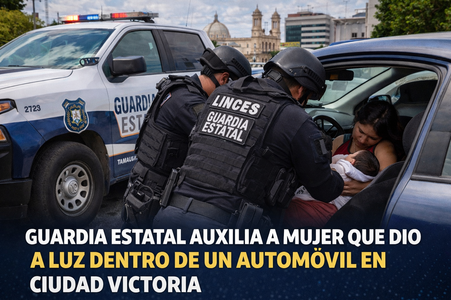 Elementos de la Guardia Estatal de Tamaulipas brindaron auxilio a una mujer que entró en labor de parto mientras viajaba en un automóvil por calles de Ciudad Victoria.