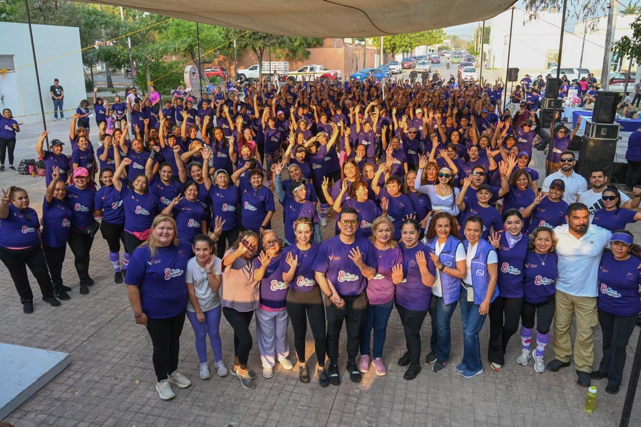 La activación física, al ritmo de música y coreografías, fue para celebrar el Día Internacional de la Mujer y se llevó a cabo en la explanada del Paseo Méndez con la asistencia de cientos de mujeres que donaron artículos de aseo personal para internas en el CEDES Victoria.